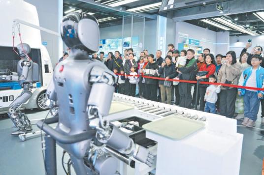 春节假期,位于亦庄的具身智能机器人4S店每天都迎来大量市民游客参观体验,大家跟机器人一起过了一个科技感爆棚、趣味满满的春节。本报记者 和冠欣摄