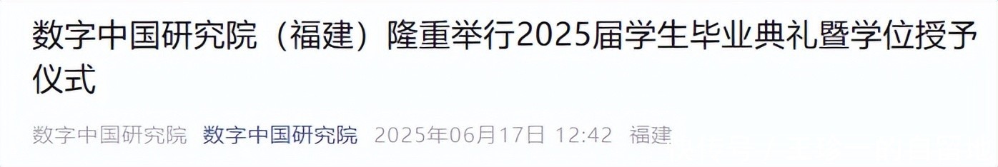 查阅相关信息可知,今年6月10日下午,数字中国研究院(福建)隆重举行了2025届学生毕业典礼暨学位授予仪式。