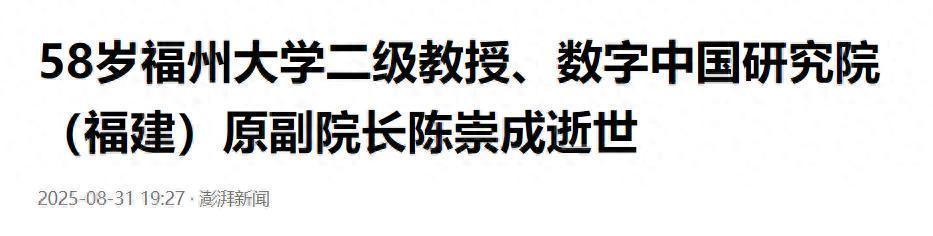 如今,福州大学的二级教授、博士生导师陈崇成也不幸去世了,终年58岁。